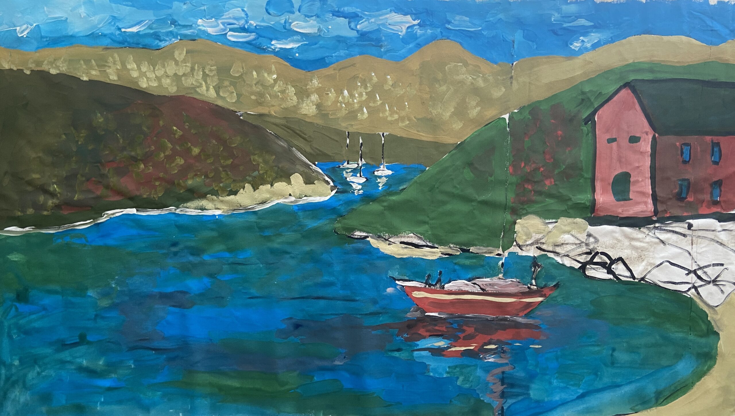 Before boarding in the United States, my paints were unexpectedly confiscated, leaving me to work with a limited palette. When we later anchored at a marina, my artist friend and I set out to a local hardware store, gathering raw pigments to mix into paint by hand. The resulting colors were intensely vibrant, shaped by experimentation, place, and necessity.